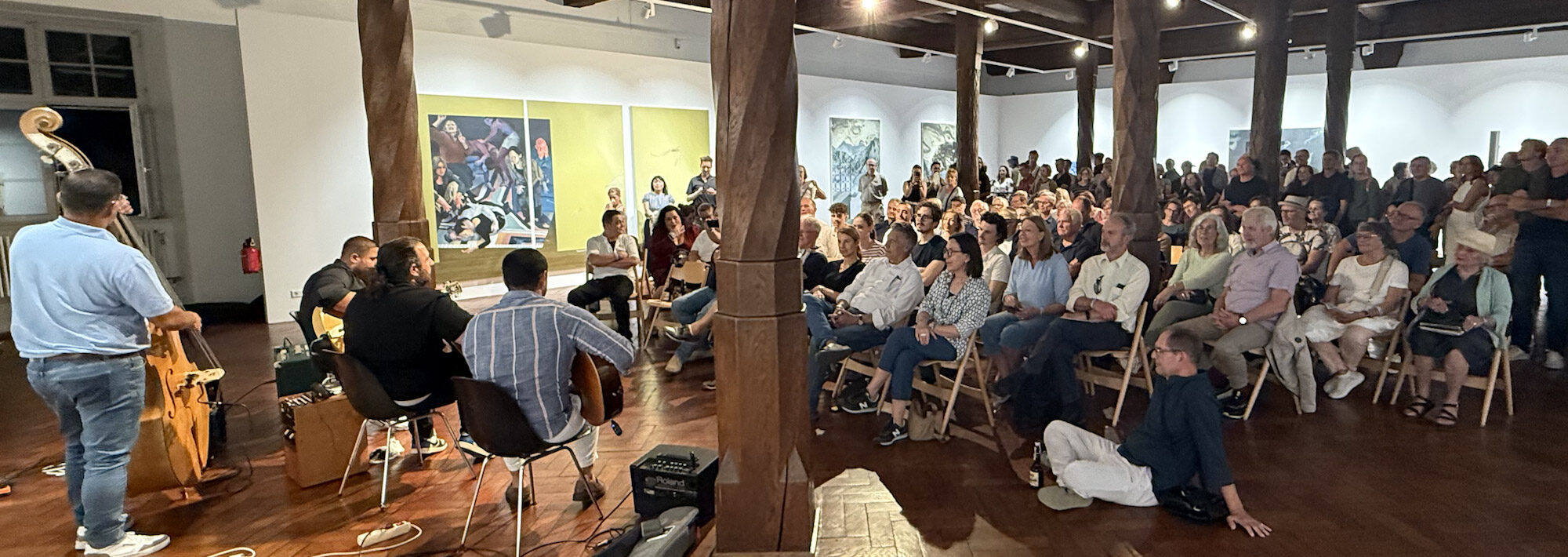 Eine sehr starke Ausstellung verlangt nach einer ebensolchen Vernissage. Die Münchner Künstlerin Sarah Neumann und der in Berlin lebende Künstler Ferdinand Dölberg durften eine solch besondere Eröffnung im Schuhhaussaal des Kunstverein ulm erleben. Mehr als 100 Besuchende, darunter auffallend viele junge