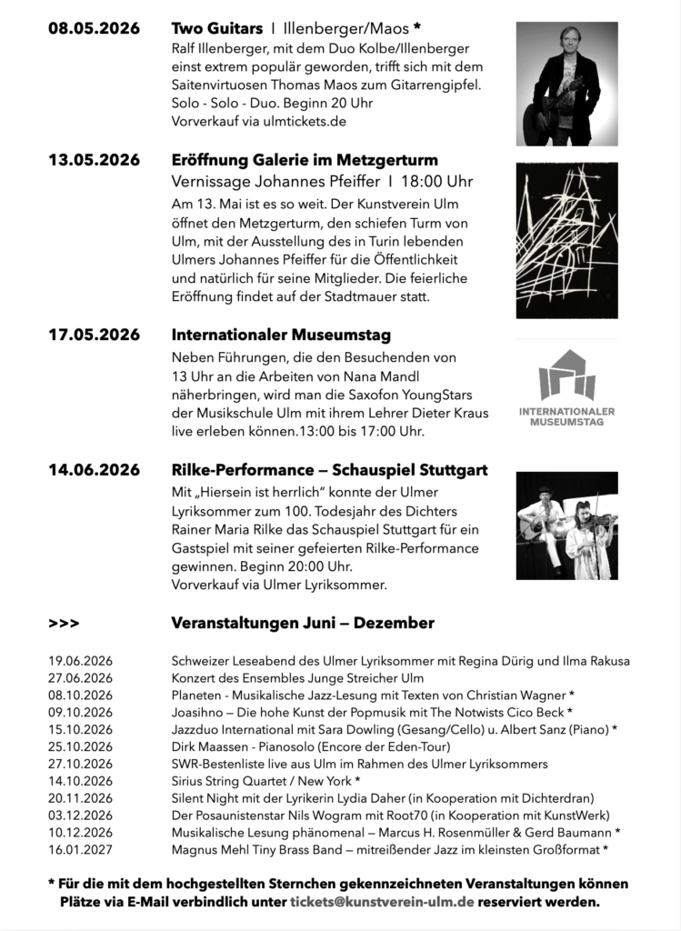 Der Kunstverein Ulm bietet seinen Mitgliedern und einem interessierten Publikum neben Ausstellungen